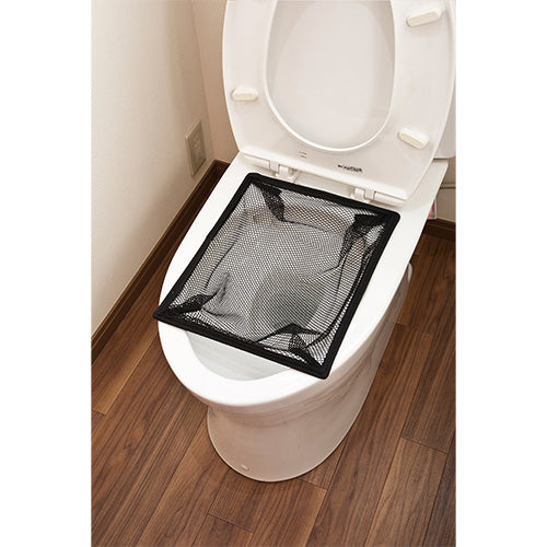 あらかじめ「受けネット」を便器に被せ、その上からサニタクリーン簡単トイレを被せます。